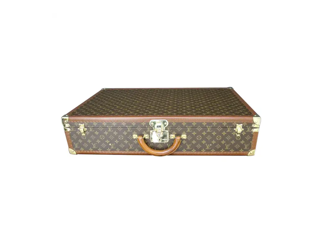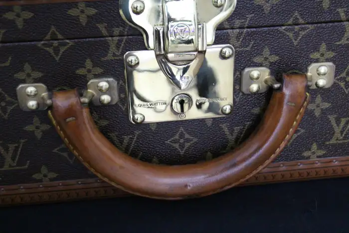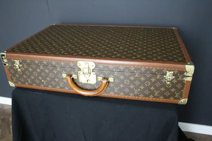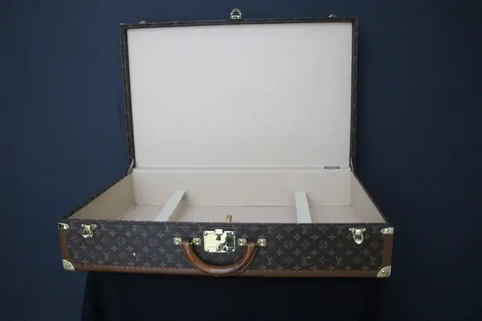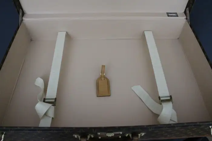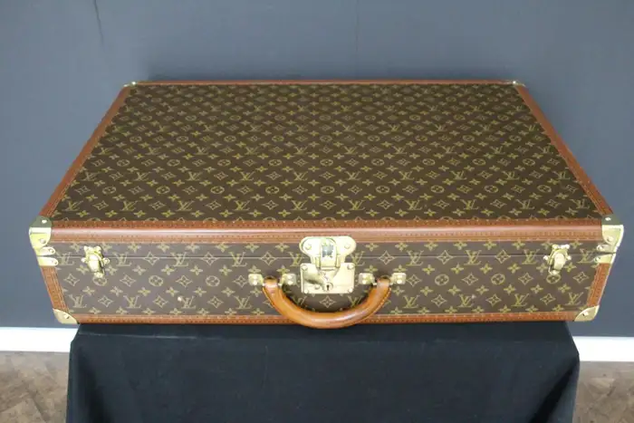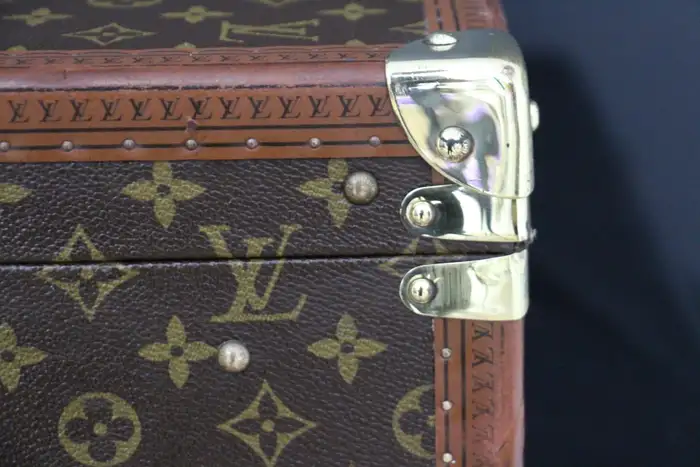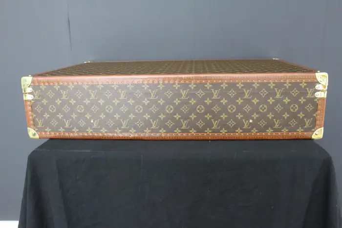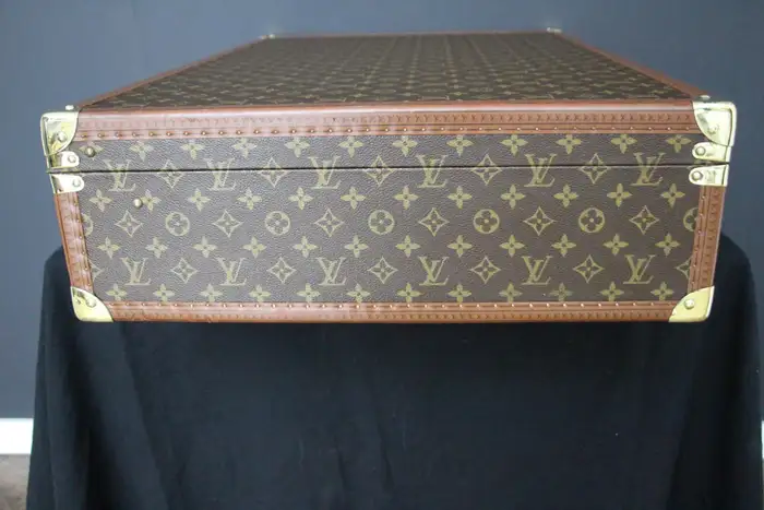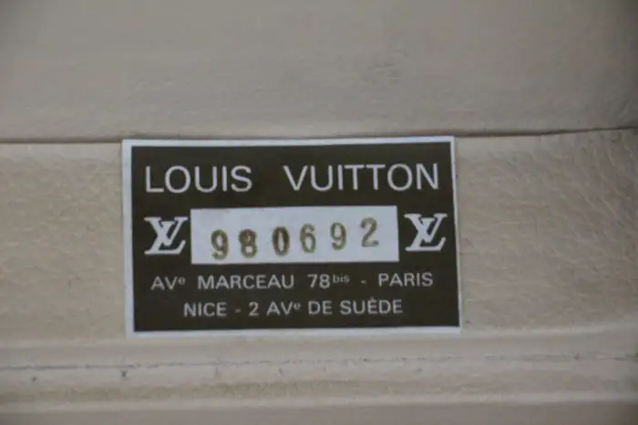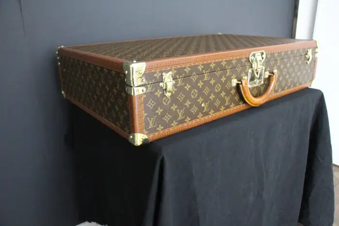 Elle possède toujours son porte-nom en cuir Louis Vuitton. Vous pouvez voyager avec cette élégante valise rigide ou l’utiliser comme élément de décoration très élégant. De plus, comme son intérieur est très propre, vous pouvez également l’utiliser comme rangement. Ses dimensions totales sont de 80 x 51 x 18 cm.