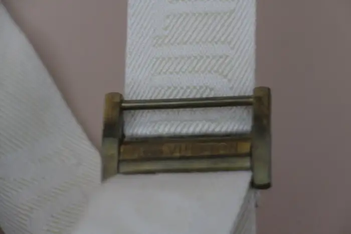 Elle est dotée d’un manche en cuir rond très confortable, délicatement tanné par le temps. L’intérieur est également en très bon état avec ses 2 sangles d’origine cousues Louis Vuitton et son numéro de série.