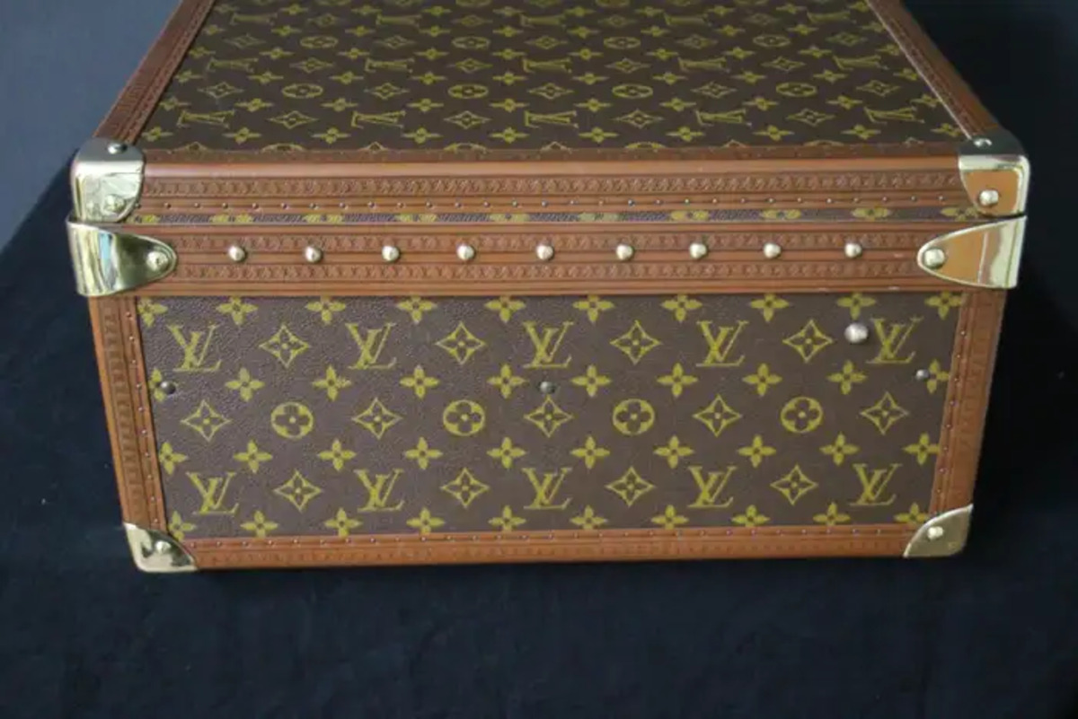 Voici une magnifique petite valise Louis Vuitton Alzer monogramme. La Collection Alzer est le haut de gamme de la valise Vuitton, les pièces les plus luxueuses . De plus, cette taille est très rare et recherchée. Elle dispose de tous les accessoires en laiton massif estampillés Louis Vuitton : serrures, fermoirs et clous, ainsi que la garniture estampillée LV tout du long. Elle est dotée d’une poignée en cuir large et confortable. Quant à son intérieur, il est en parfait état . Il est équipé d’un plateau amovible avec des sangles brodées Louis Vuitton, son intérieur est frais et propre, sans odeur, et tout est d’origine. Cette petite valise Louis Vuitton Alzer porte encore son étiquette Louis Vuitton d’origine ainsi que son numéro de série. Ses dimensions sont de 60 cm x 41 cm et 22 cm de haut. Elle peut être utilisée pour les voyages, mais aussi comme élément de décoration haut de gamme dans de beaux intérieurs…