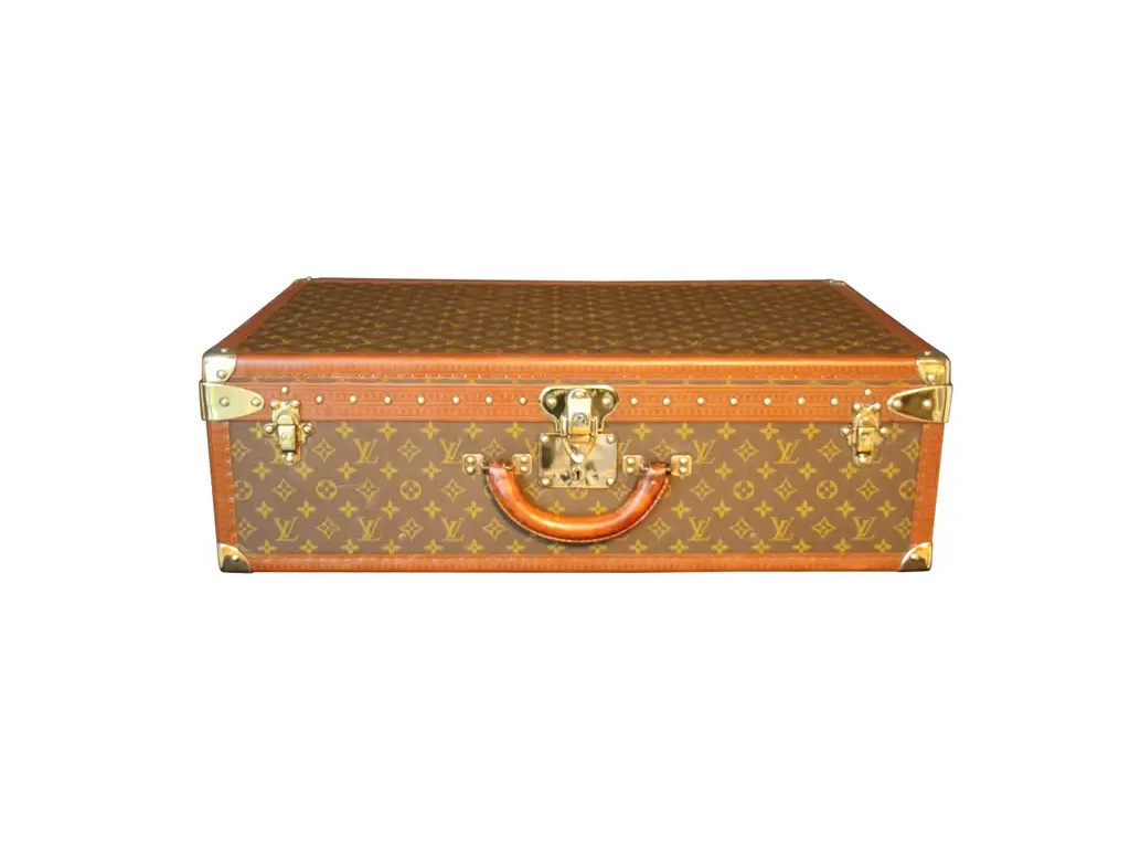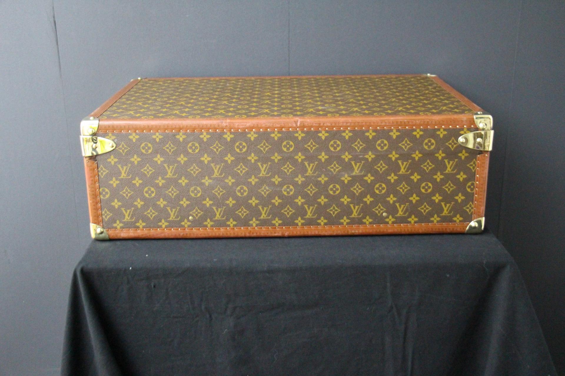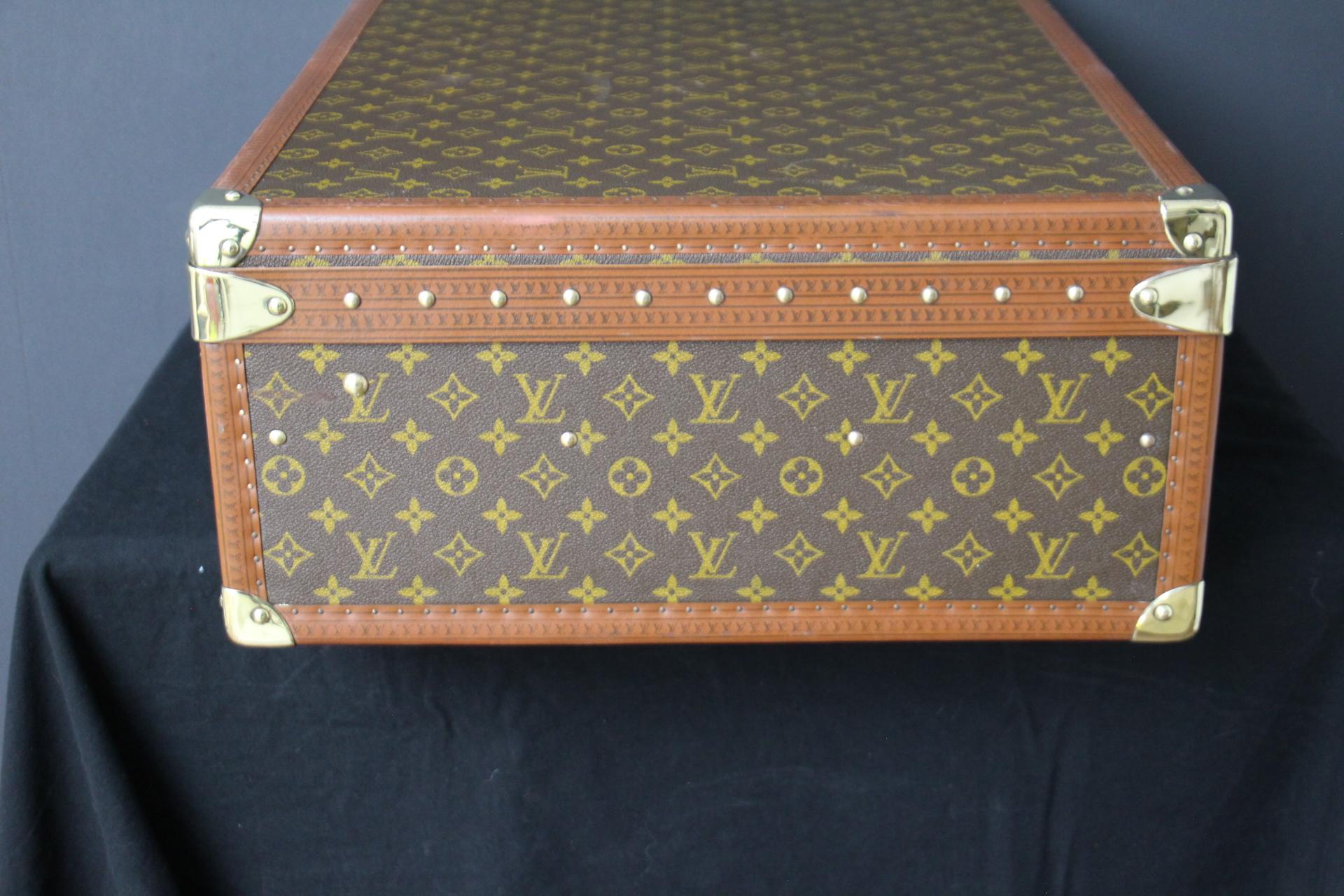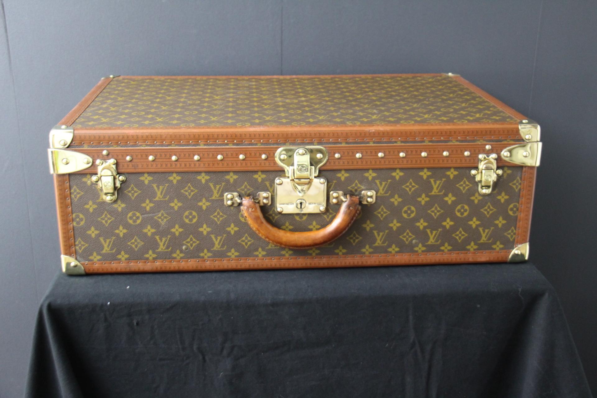 Ce bagage est une magnifique valise Louis Vuitton Alzer monogramme. Cette valise de 70 cm est presque la plus grande et certainement la plus luxueuse des valises Louis Vuitton. Il est doté de tous les accessoires en laiton massif estampillés Louis Vuitton : serrures, fermoirs et clous. Très bel intérieur, frais et propre, sans odeur, avec son étiquette de numéro de série. Il lui manque son plateau amovible. Il pourrait être utilisé pour le stockage car son intérieur est propre. Ses dimensions sont de 70 cm x 47 cm et 22 cm de haut. Il peut être utilisé comme élément de décoration haut de gamme, seul ou placé à la base d’une pile pyramidale pour produire un effet spectaculaire… Quoi qu’il en soit, il constituerait un parfait sujet de conversation dans tous les intérieurs haut de gamme et pourrait s’accorder avec une décoration classique ou très moderne.