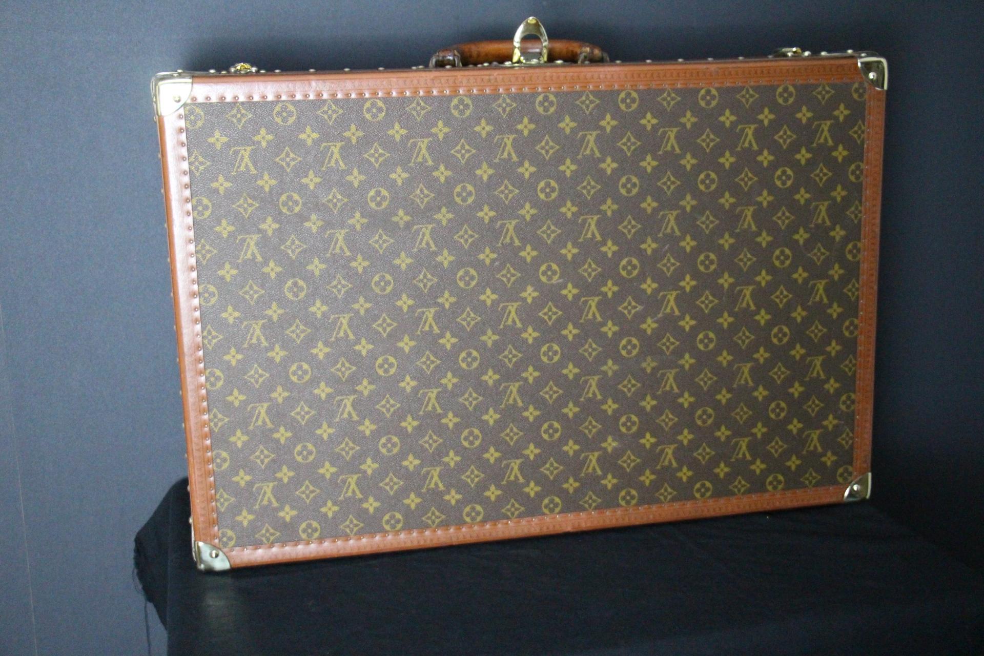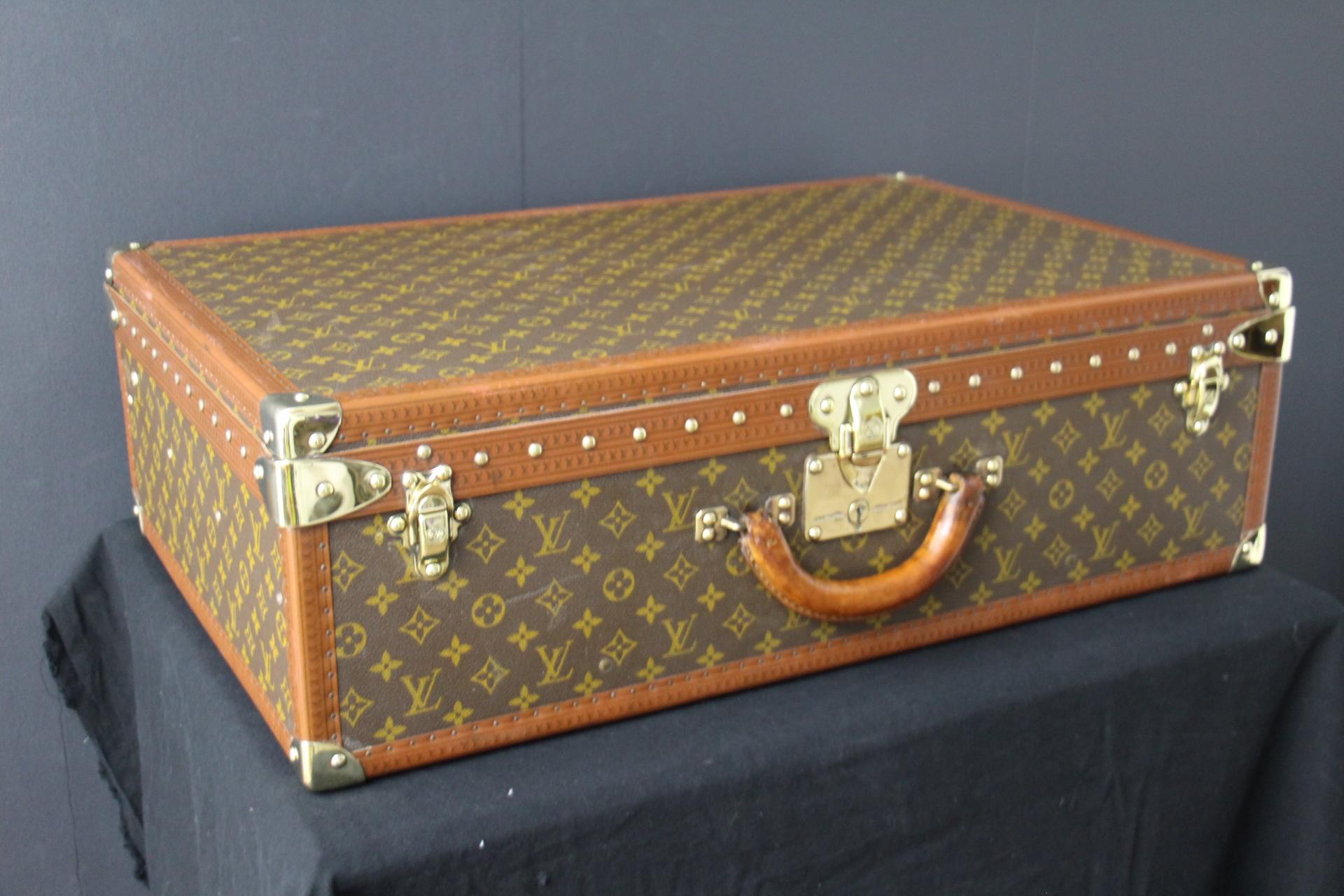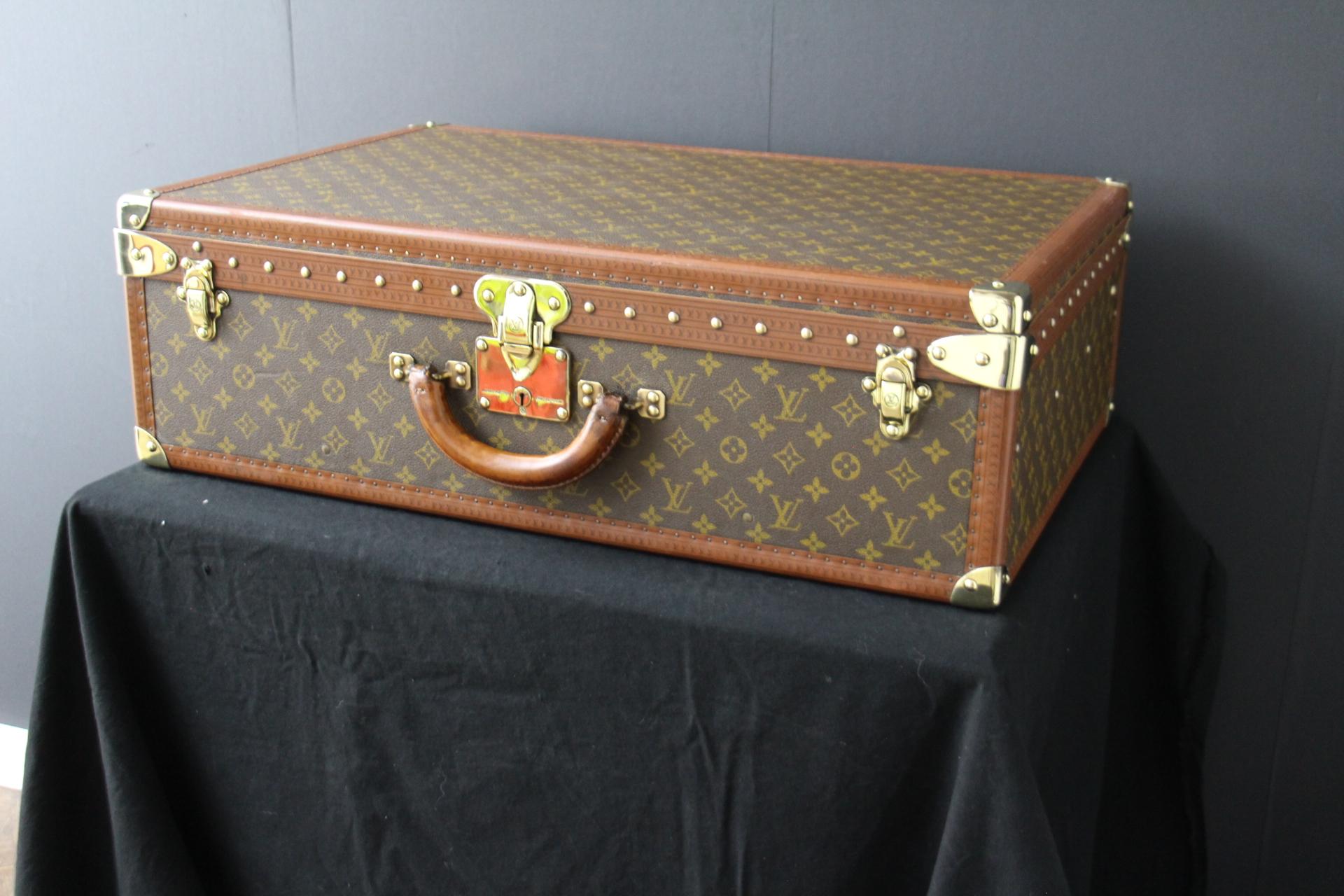 Ce bagage est une magnifique valise Louis Vuitton Alzer monogramme. Cette valise de 70 cm est presque la plus grande et certainement la plus luxueuse des valises Louis Vuitton. Il est doté de tous les accessoires en laiton massif estampillés Louis Vuitton : serrures, fermoirs et clous. Très bel intérieur, frais et propre, sans odeur, avec son étiquette de numéro de série. Il lui manque son plateau amovible. Il pourrait être utilisé pour le stockage car son intérieur est propre. Ses dimensions sont de 70 cm x 47 cm et 22 cm de haut. Il peut être utilisé comme élément de décoration haut de gamme, seul ou placé à la base d’une pile pyramidale pour produire un effet spectaculaire… Quoi qu’il en soit, il constituerait un parfait sujet de conversation dans tous les intérieurs haut de gamme et pourrait s’accorder avec une décoration classique ou très moderne.