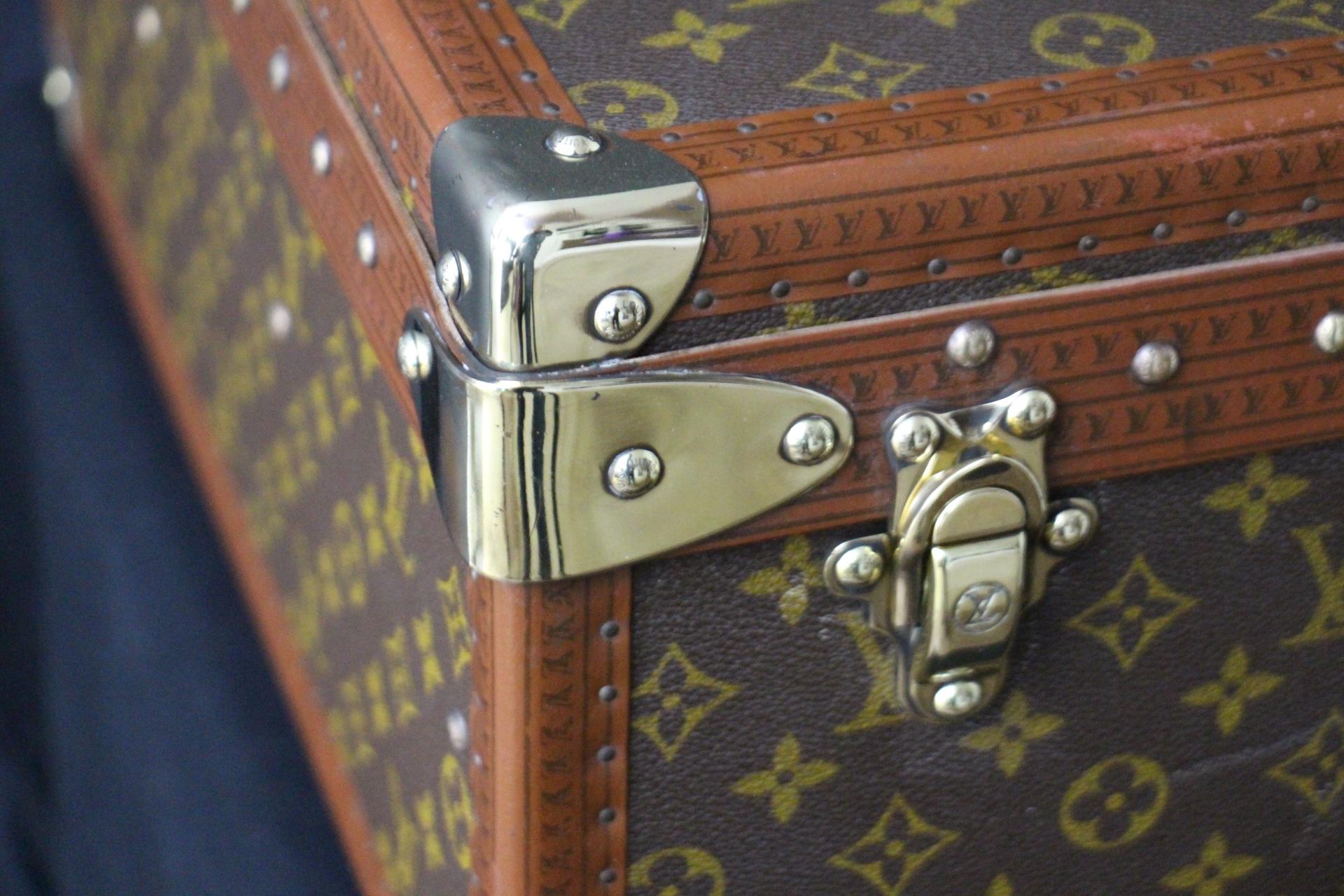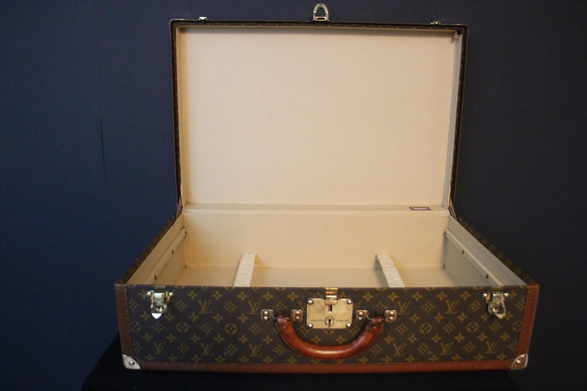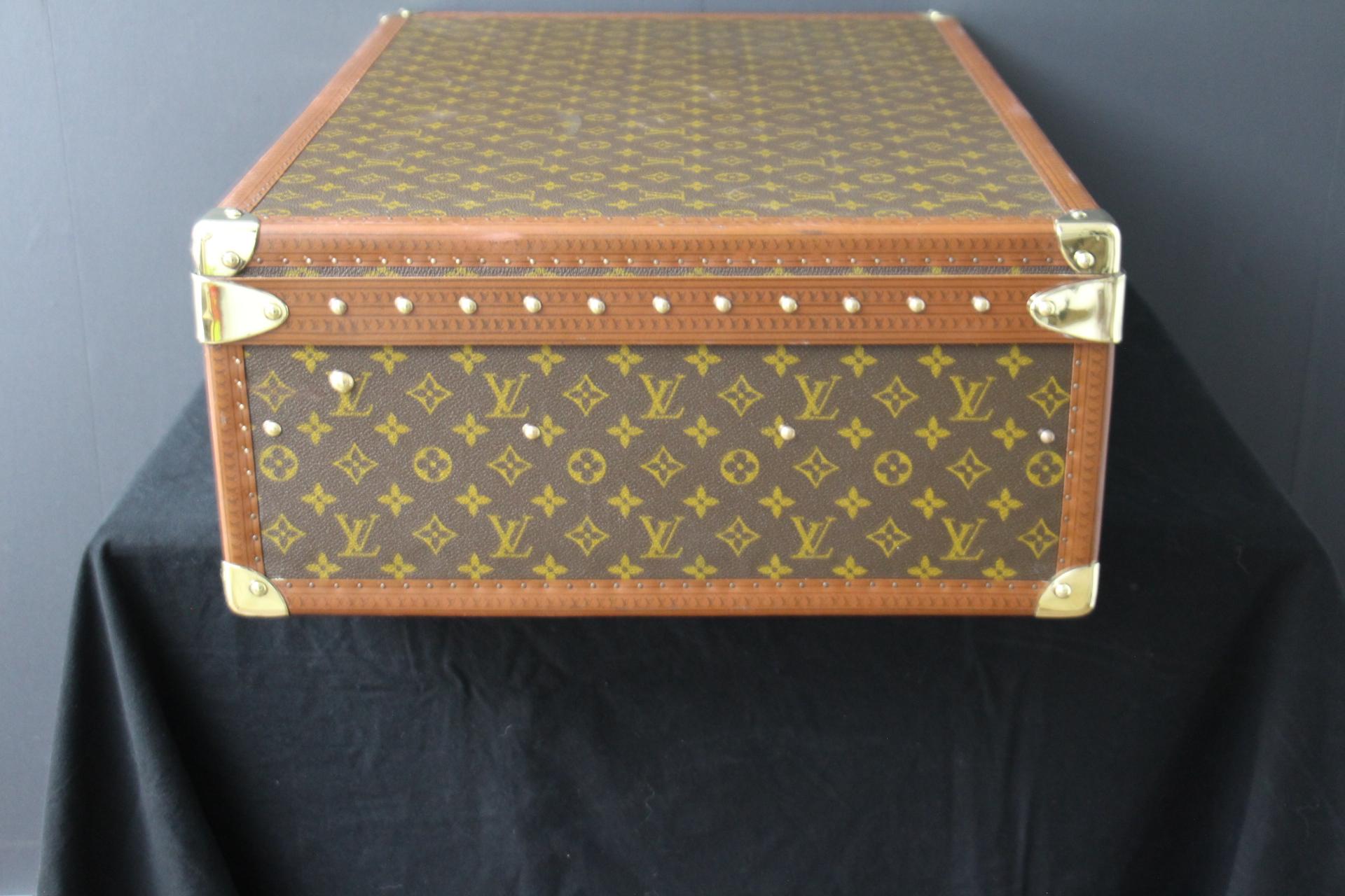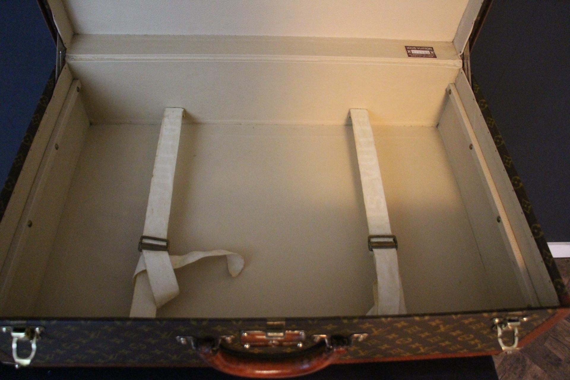 Ce bagage est une magnifique valise Louis Vuitton Alzer monogramme. Cette valise de 70 cm est presque la plus grande et certainement la plus luxueuse des valises Louis Vuitton. Il est doté de tous les accessoires en laiton massif estampillés Louis Vuitton : serrures, fermoirs et clous. Très bel intérieur, frais et propre, sans odeur, avec son étiquette de numéro de série. Il lui manque son plateau amovible. Il pourrait être utilisé pour le stockage car son intérieur est propre. Ses dimensions sont de 70 cm x 47 cm et 22 cm de haut. Il peut être utilisé comme élément de décoration haut de gamme, seul ou placé à la base d’une pile pyramidale pour produire un effet spectaculaire… Quoi qu’il en soit, il constituerait un parfait sujet de conversation dans tous les intérieurs haut de gamme et pourrait s’accorder avec une décoration classique ou très moderne.