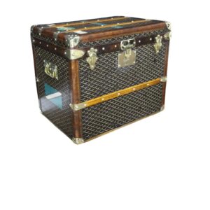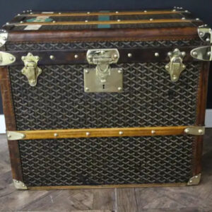 Confectionnées dans des matériaux nobles et résistants, tels que le cuir et la toile Goyardine enduite, les malles Goyard anciennes arborent un design intemporel et élégant. Chaque malle est un véritable chef-d’œuvre d’artisanat, réalisé avec un soin méticuleux et un souci du détail inégalé, et sélectionné pour son authenticité et son état de conservation exceptionnel.