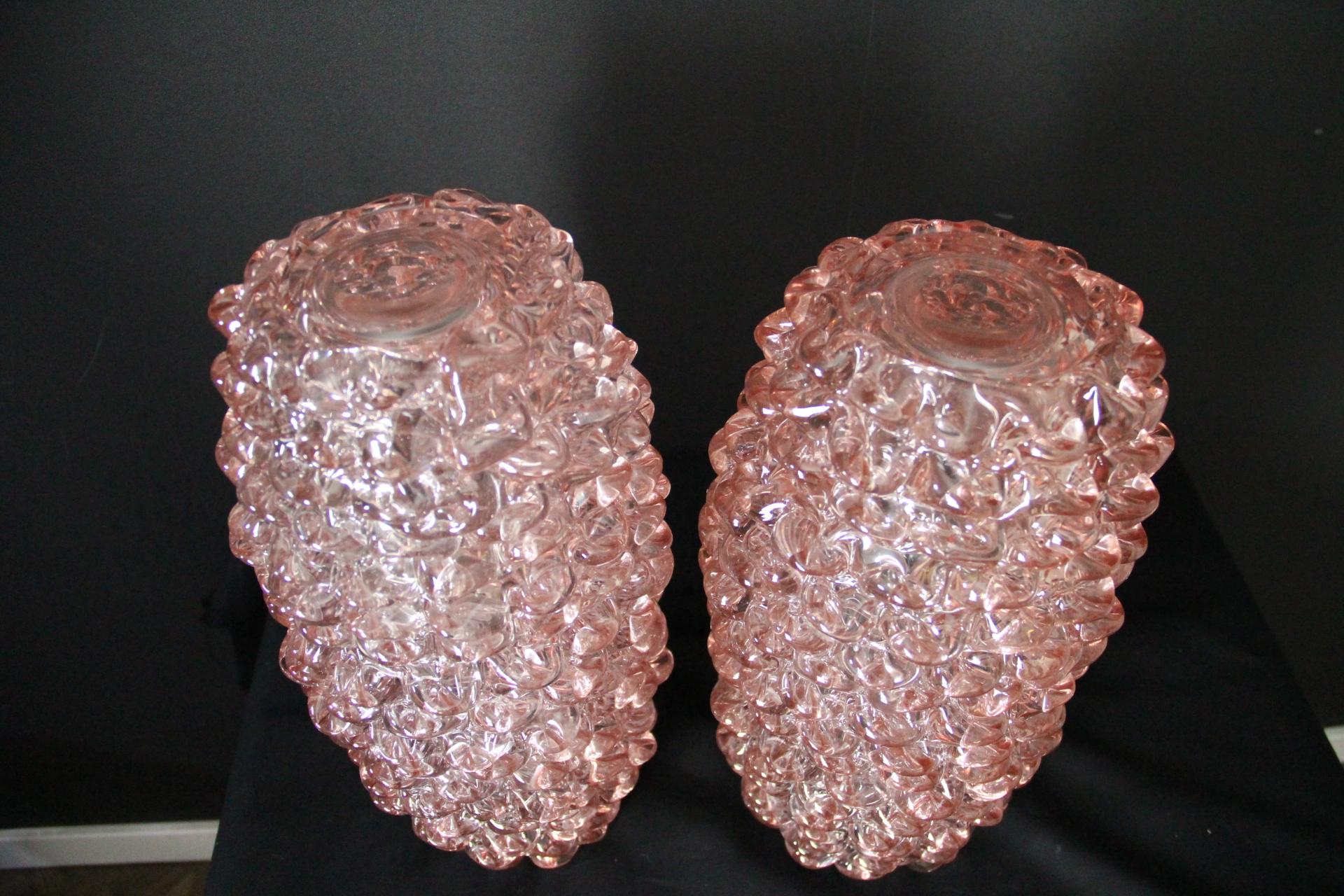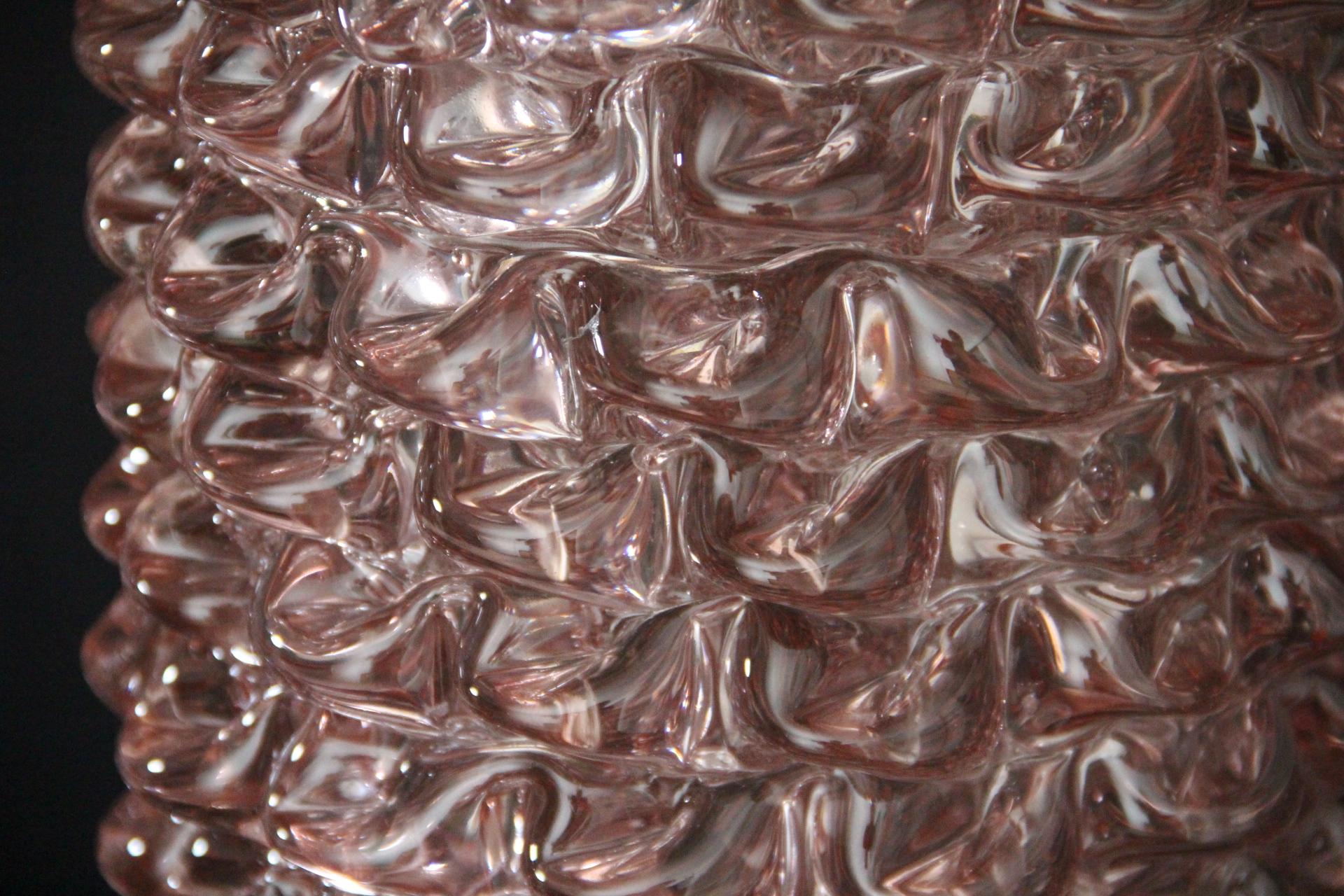 Les parois de verre sont très profondes et chaque boule de verre à bulles a été appliquée individuellement à la main. C'est un travail artistique pour un résultat magnifique. De plus, elles ont été entièrement fabriquées à la main à Venise, y compris chaque boule de verre pour un effet très vivant... Chaque vase pèse environ 15 kg.