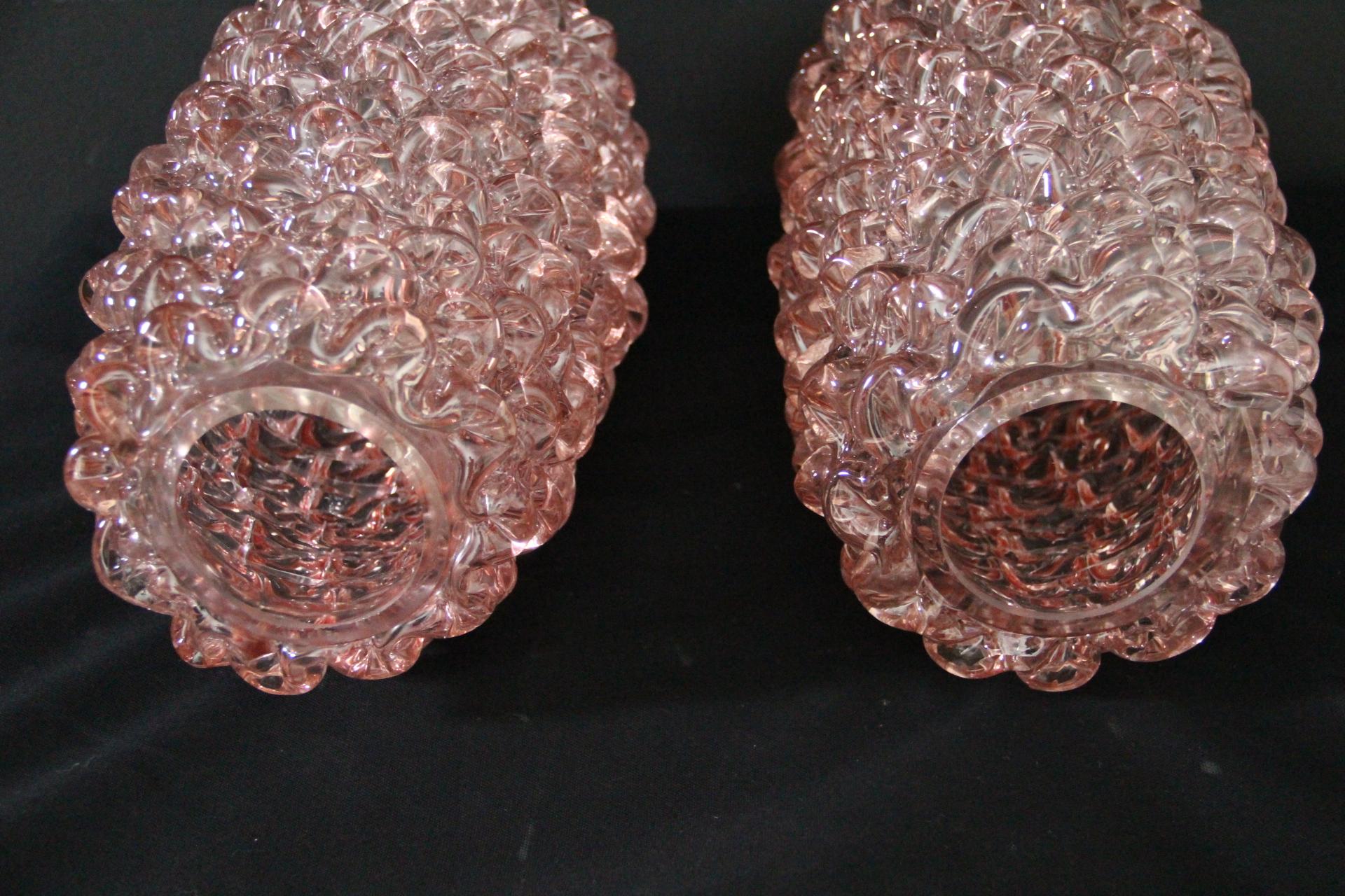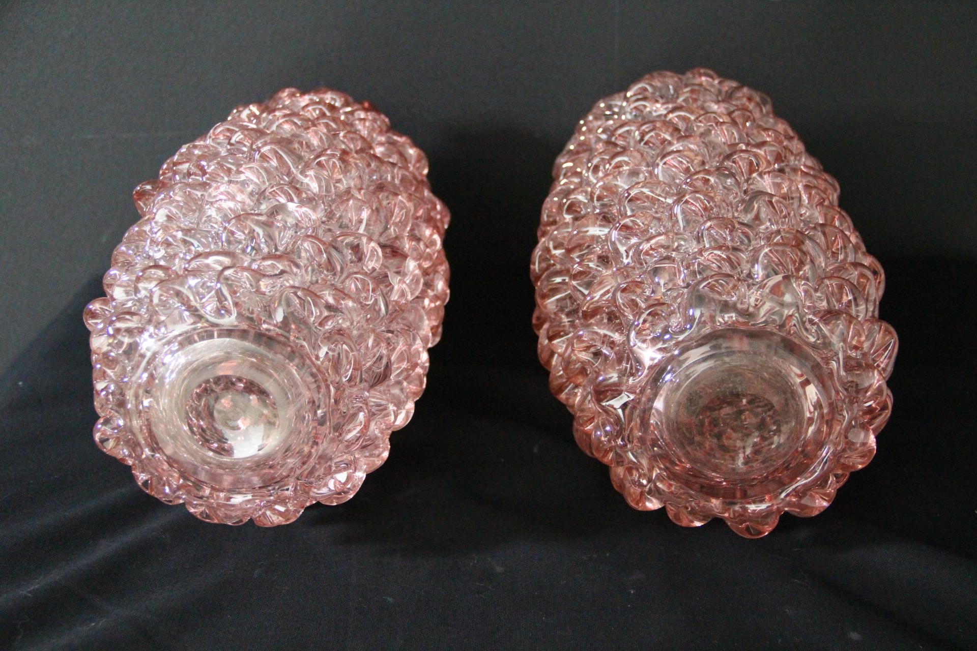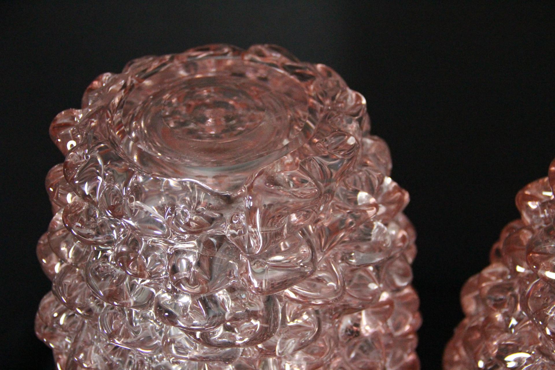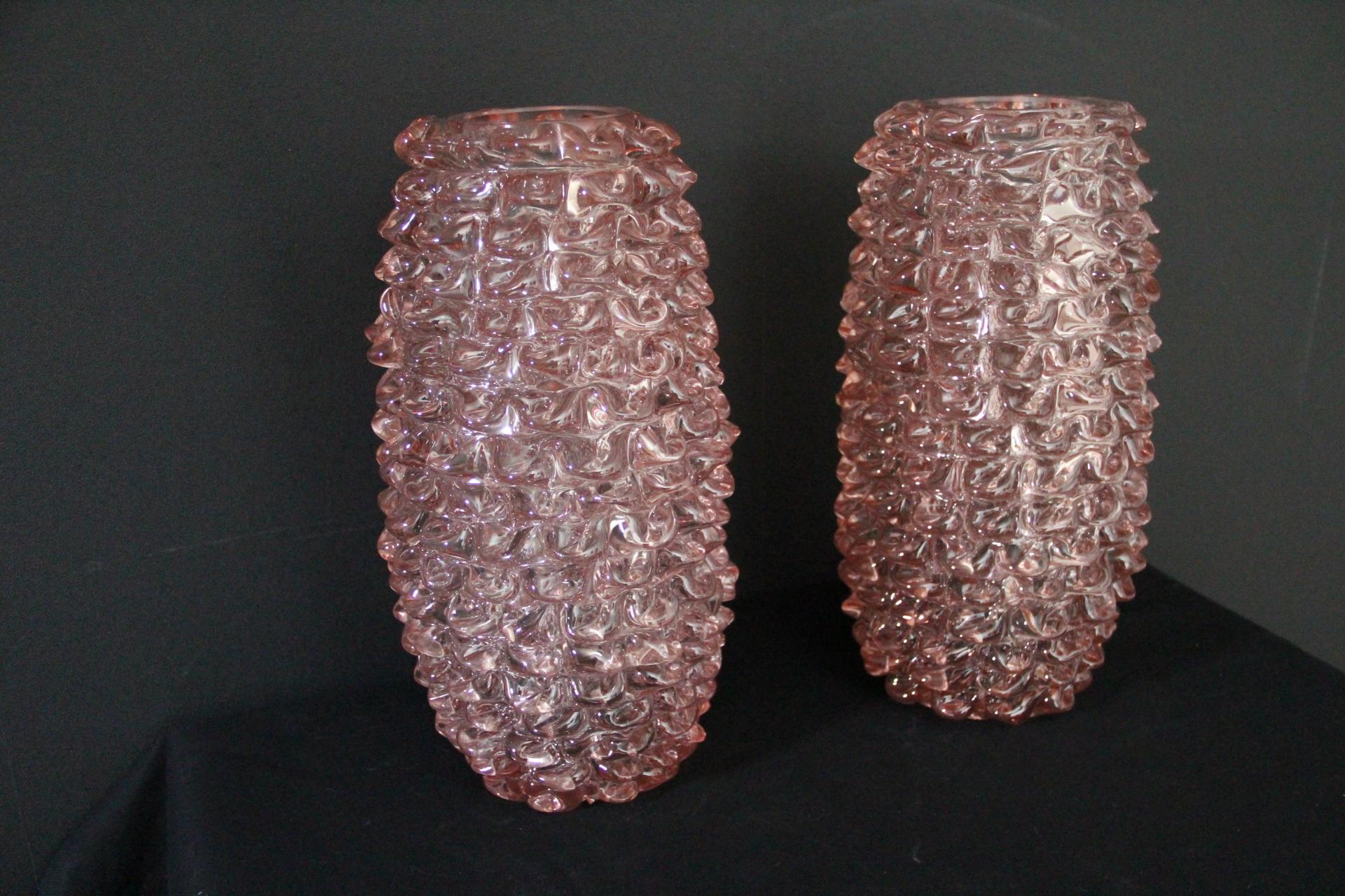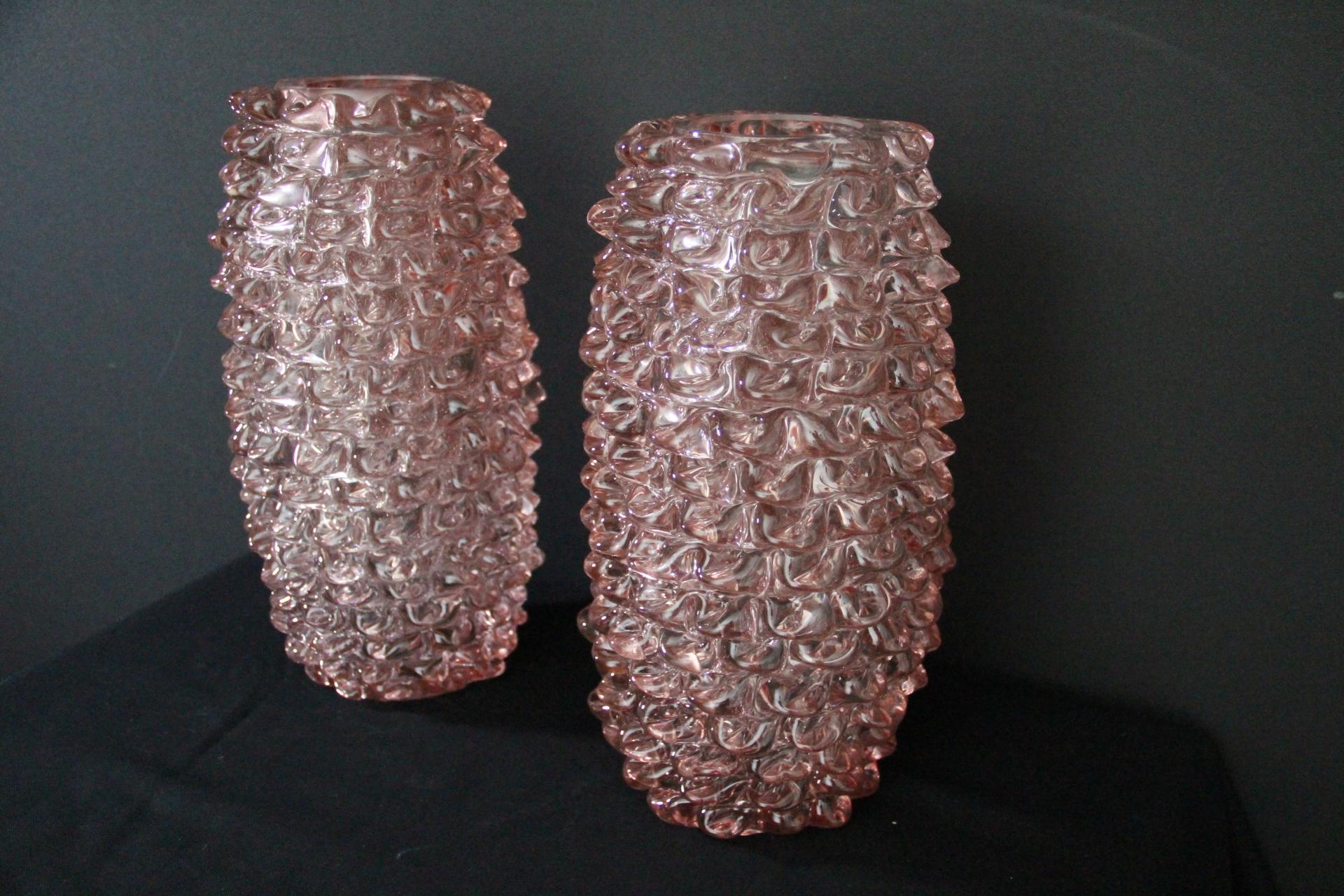 Ces vases en verre de Murano sont très impressionnants et leurs couleurs sont très séduisantes. Ces vases vénitiens sont entièrement décorés à la main selon la technique du rostrato: des pointes de verre ont été tirées individuellement en relief pour obtenir cet effet spectaculaire en 3D. Cette technique est typiquement vénitienne et nécessite des artisans très qualifiés. En effet, les artisans doivent être très rapides afin de pouvoir étirer toutes les pointes lorsque la température est suffisamment élevée.