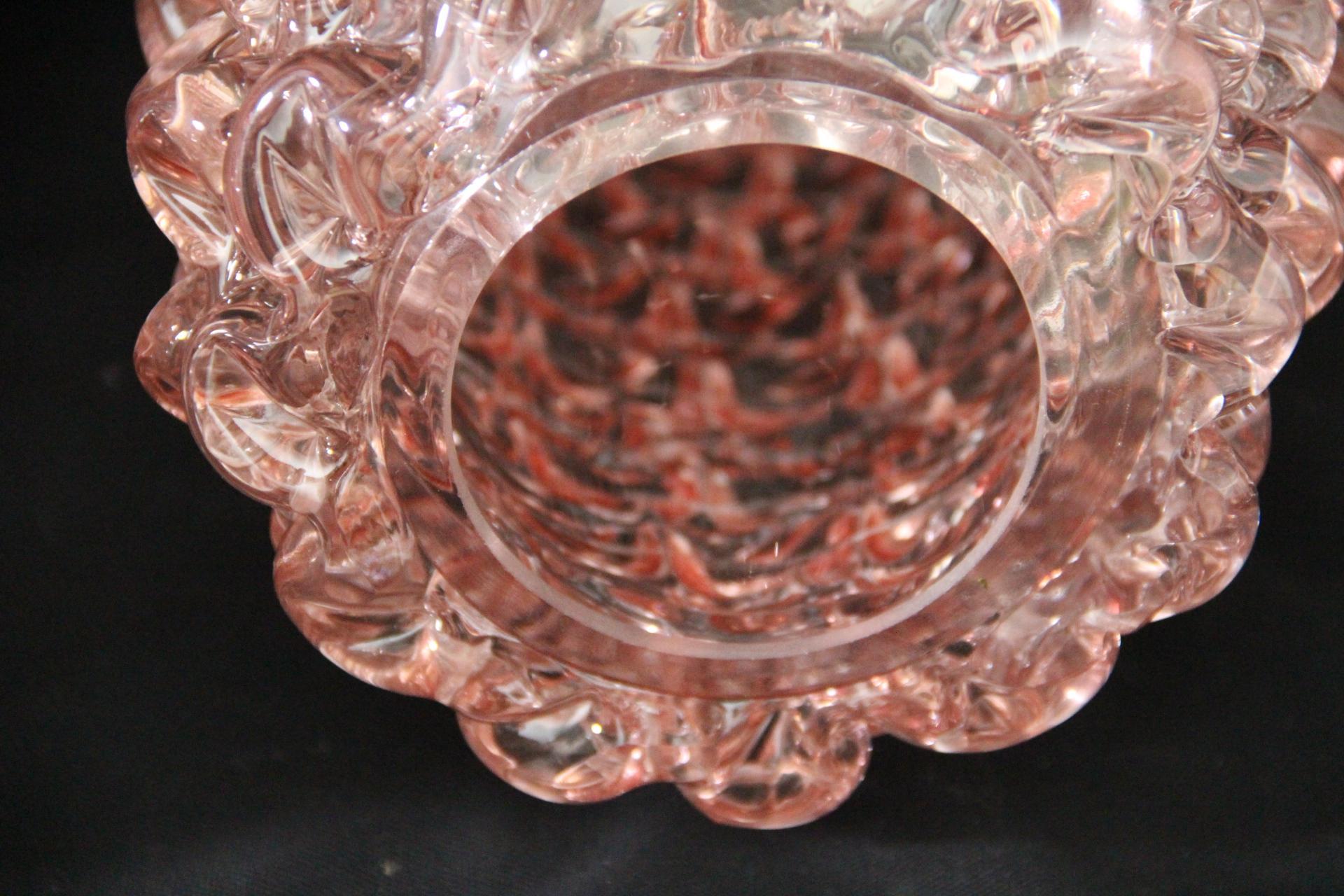 Chaque vase pèse environ 15 kg. Leur base est de couleur cristal clair irisé. Ces vases vintage année 80 sont bien plus beaux en vrai que sur les photos...