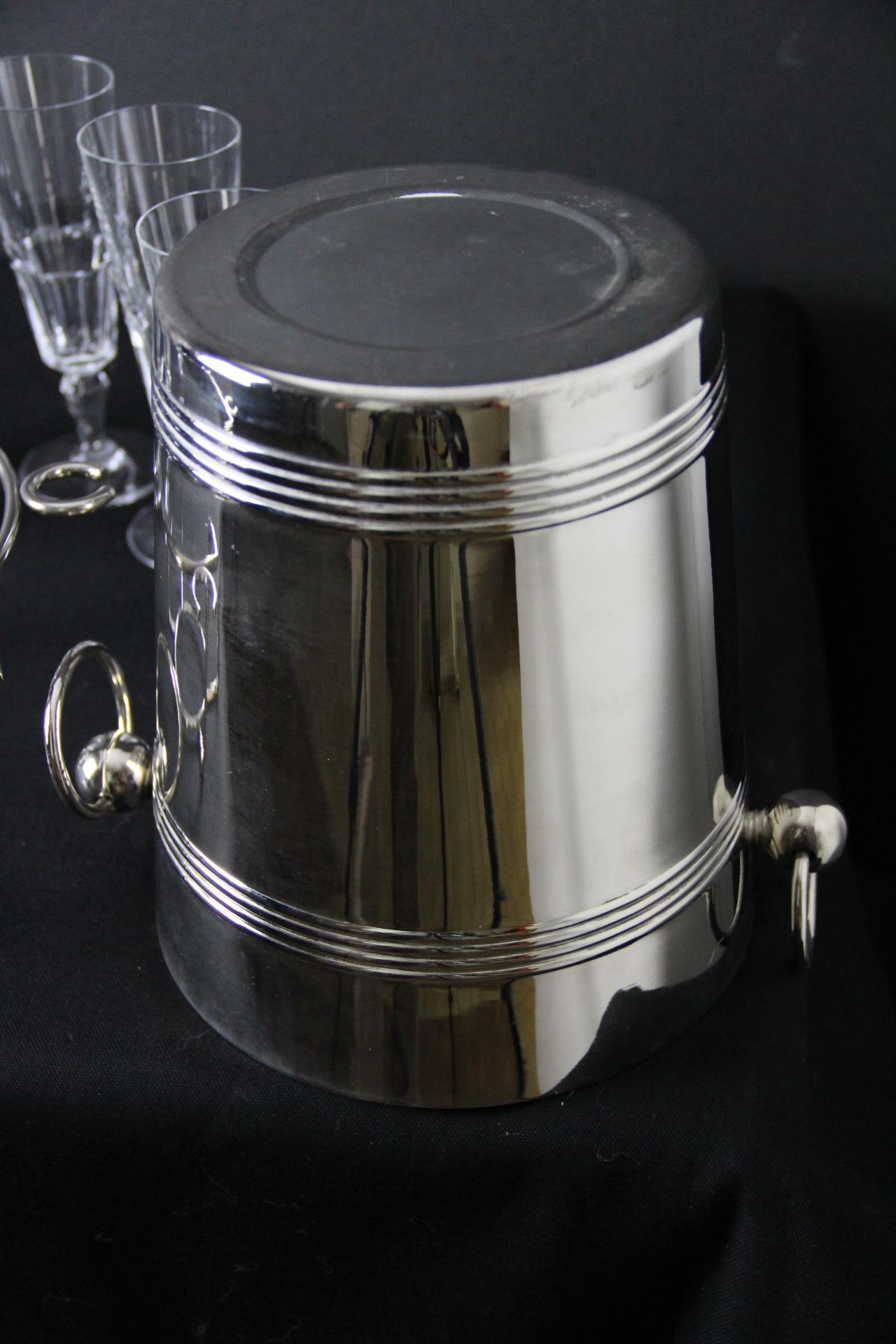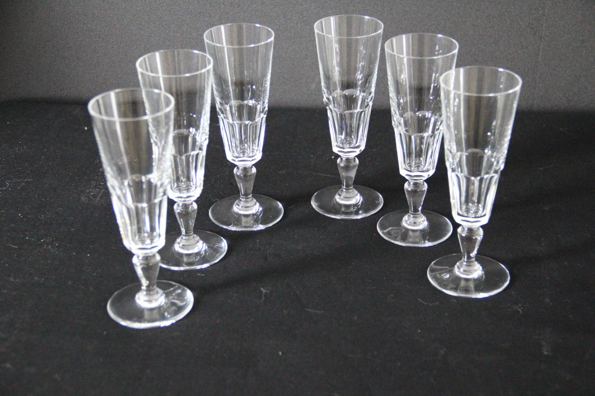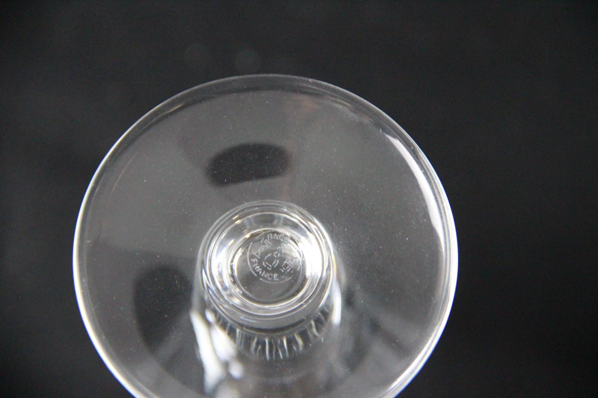 L'intérieur est entièrement équipé de cercles en cuivre permettant de ranger 6 bouteilles et 2 jeux de 12 verres sur 2 niveaux. Il est en très bon état et complet avec ses 2 sets de 12 verres en cristal Baccarat. Chaque verre porte le cachet rond de Baccarat.