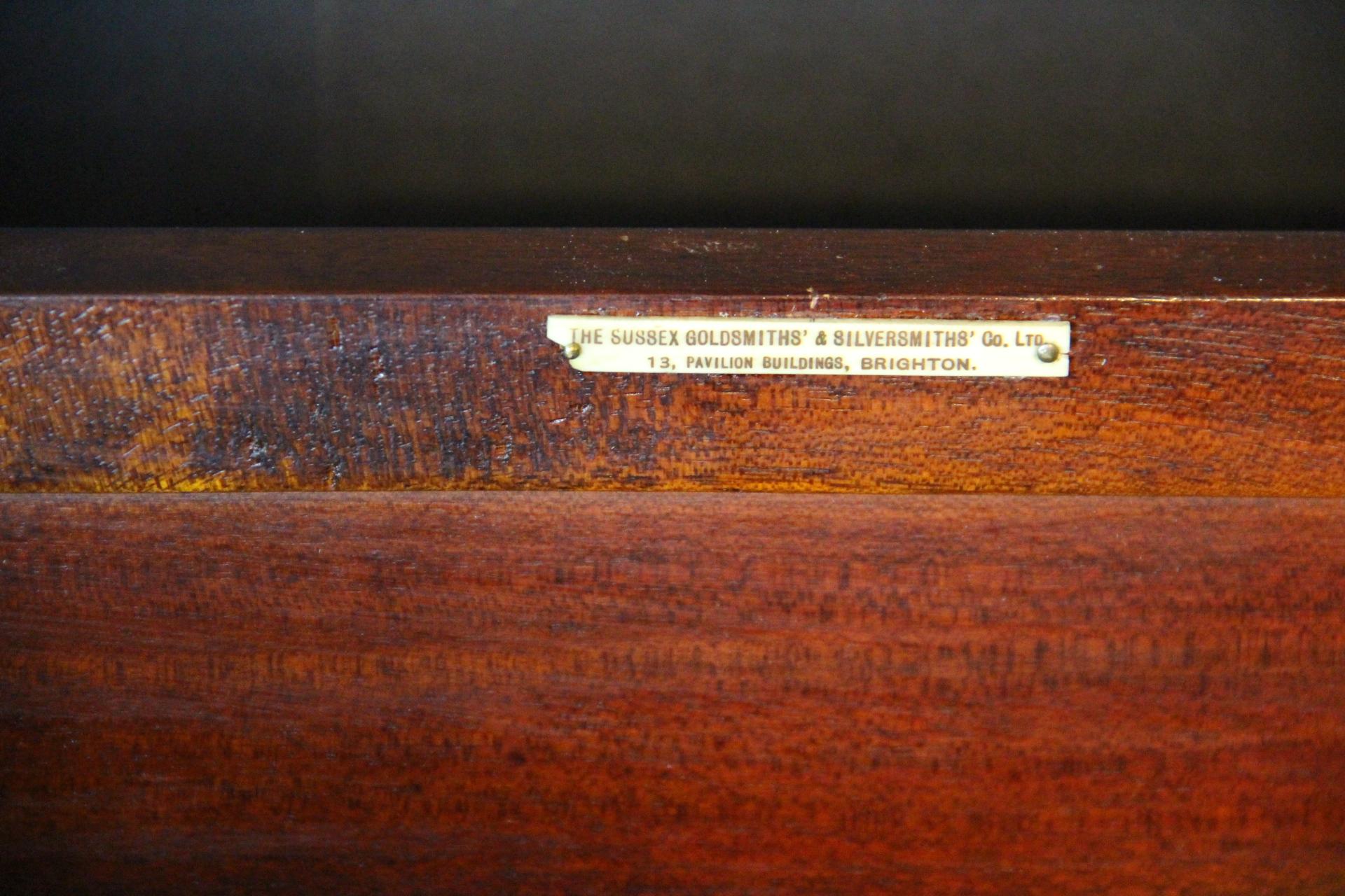 Ce bar d’appartement anglais est particulièrement inhabituel et élégant. Fabriqué en magnifique noyer de couleur marron, des années 1920, son dessus en forme d’arc s’ouvre grâce à 2 poignées en bronze massif pour révéler un intérieur époustouflant composé d’un ensemble complet de 6 verres à champagne Baccarat et d’un magnifique seau à glace en métal argenté. Tous ses verres sont estampillés Baccarat. Chaque verre est maintenu à l’intérieur grâce à un anneau ajusté ainsi que le seau à glace.