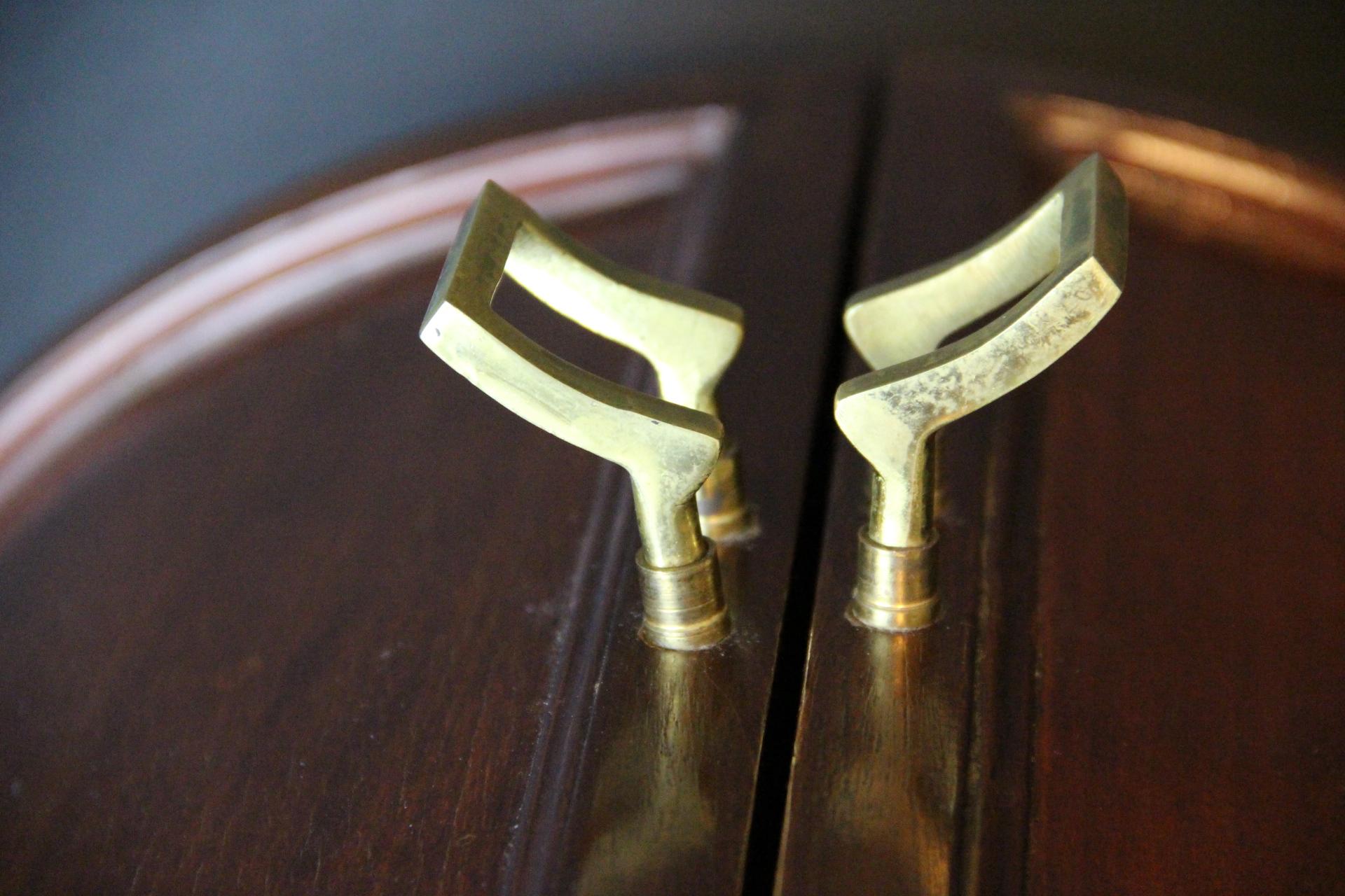 La structure est en bois massif et la construction des tiroirs est faite en queue d’aronde traditionnelle. Cette console est un meuble de très bonne qualité. Il a été entièrement réalisé à la main avec une qualité d'exécution supérieure. Très beau travail des pieds en laiton.